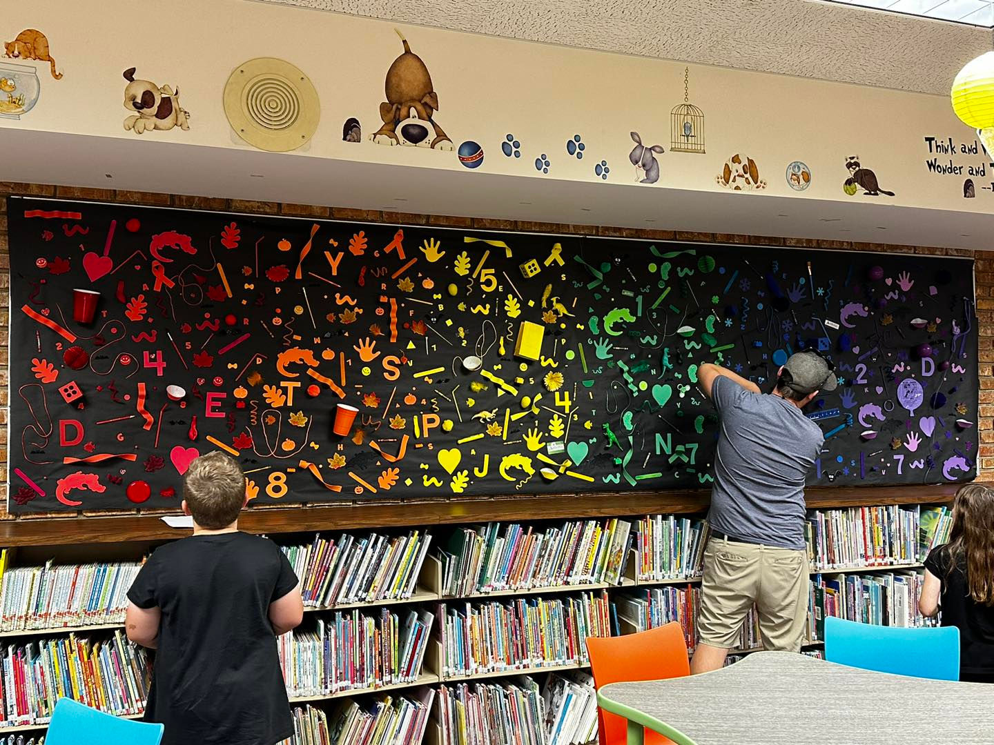 Our library sees about 40-50 kids in the Children’s Department each day after school. The circulation desk is scheduled with one librarian after school. There is a constant line of kids who have questions, need to check-out materials, want to get on a computer, etc. Keeping that many kids occupied or engaged is challenging, so I had to up our passive programming game to satisfy the need for restless kids who have been sitting all day long, quietly.