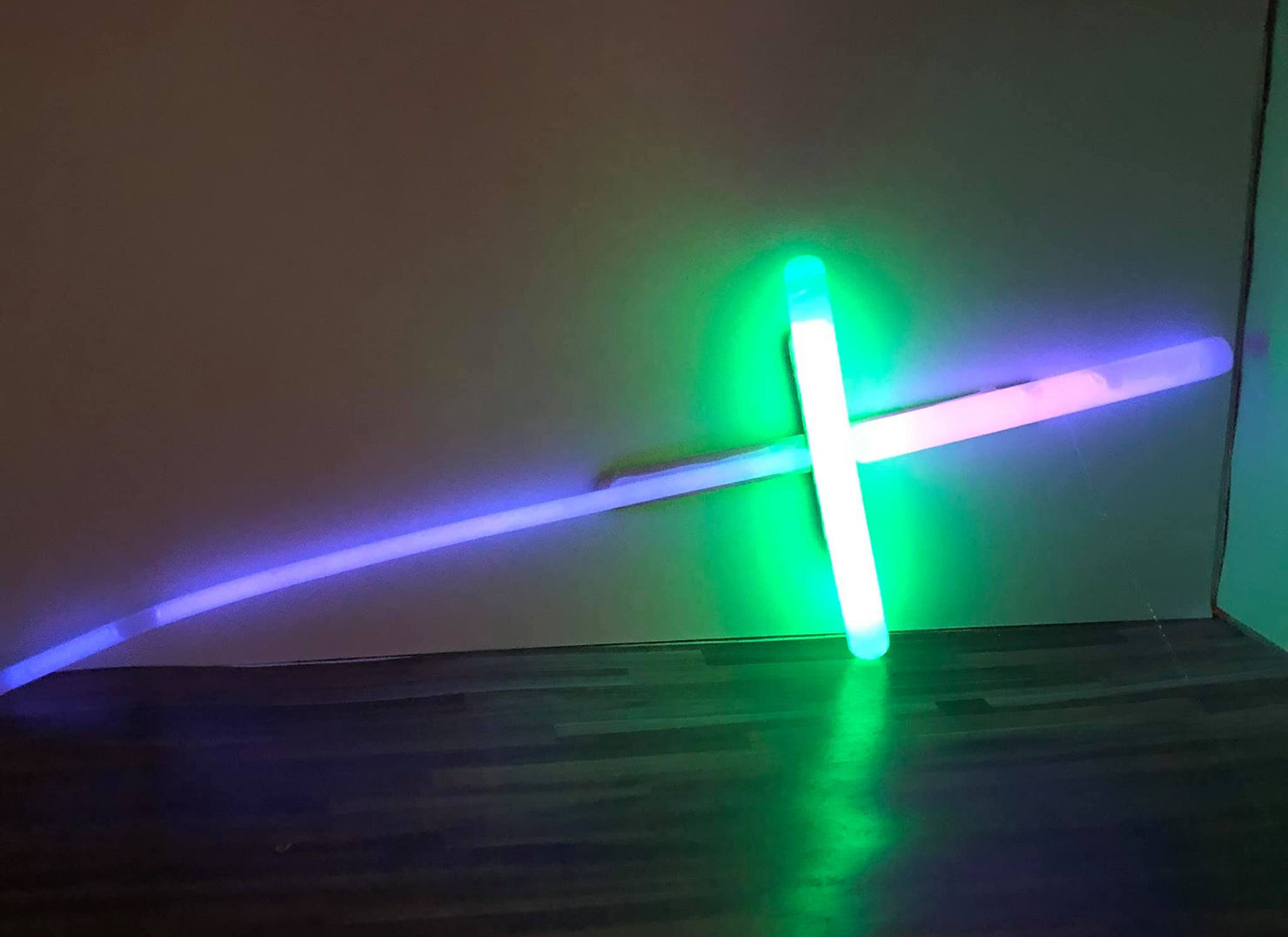 Important tip: Crack and activate the glow sticks before gluing them together.